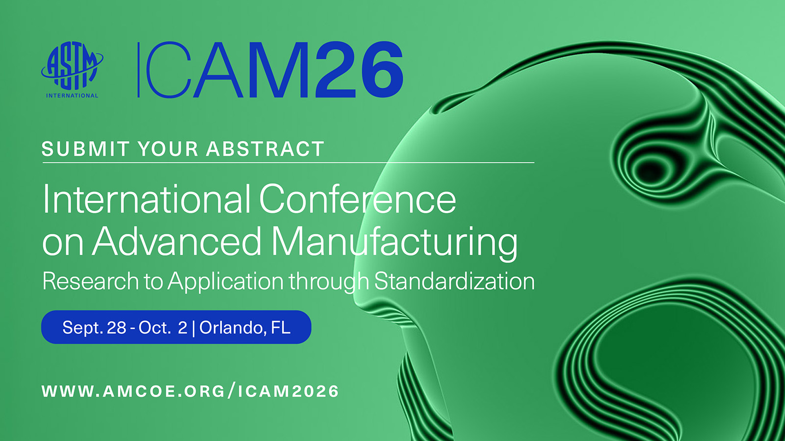 The ASTM International Conference on Advanced Manufacturing (ICAM) is the premier annual forum where the global advanced manufacturing community converges to shape the future of industrial production. ICAM 2026, hosted by the ASTM Global Advanced Manufacturing Programs Division and supported by more than a dozen ASTM technical committees, brings together the leaders, innovators, and practitioners who drive technology from early exploration to industrial deployment.