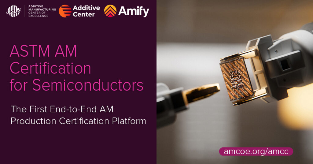 ASTM International’s AM CoE has announced a new partnership with Additive Center B.V. (Eindhoven, Netherlands) to establish the first semiconductor-specific AM supplier qualification pathway under the aforementioned AM Certification Program.