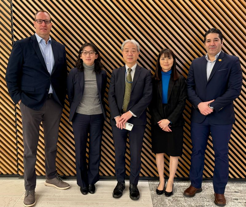*写真 (左から右へ): ASTM Jeff Grove, 松永博士, 岡野専務理事, 小柳部長, ASTM Mohsen Seifi.